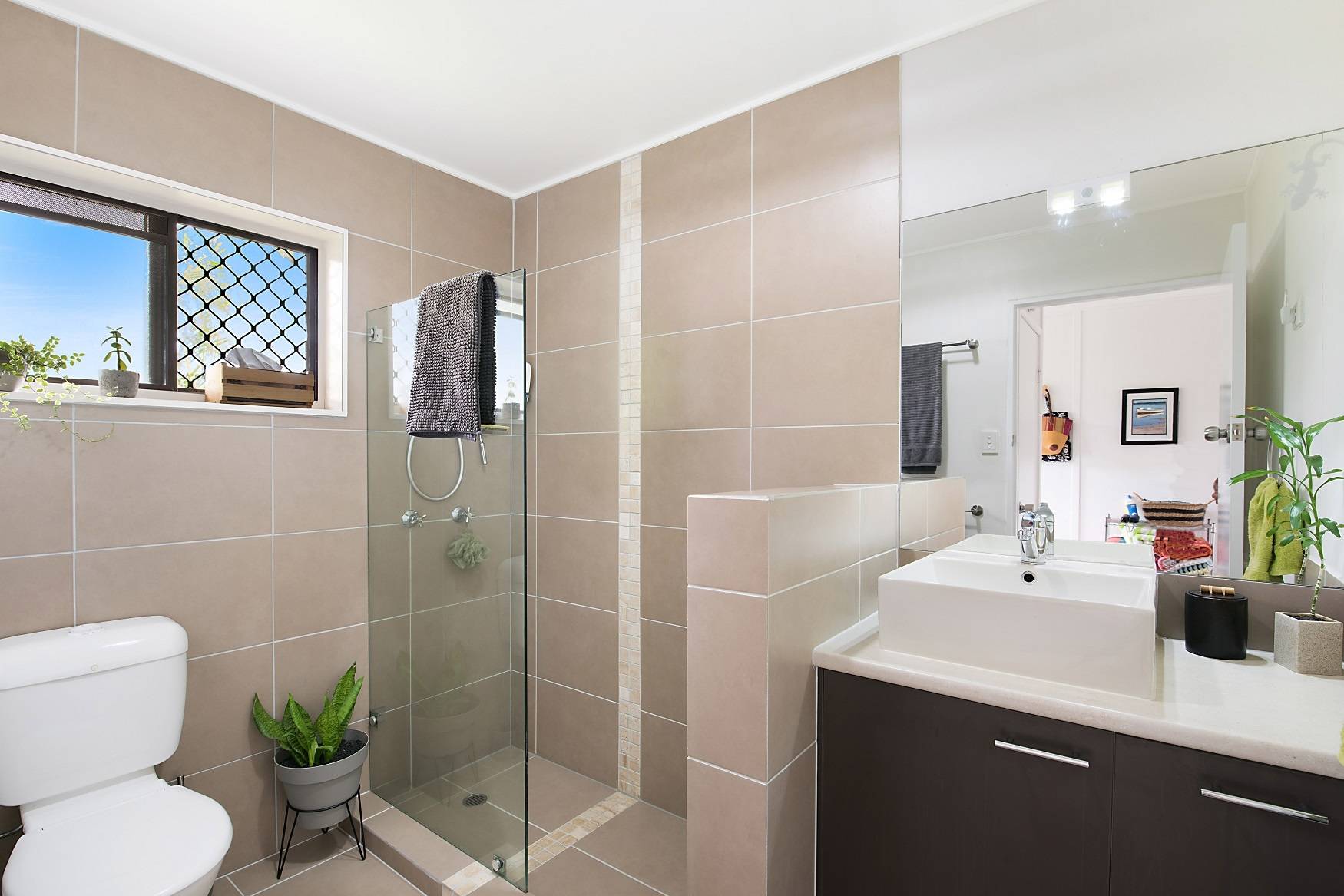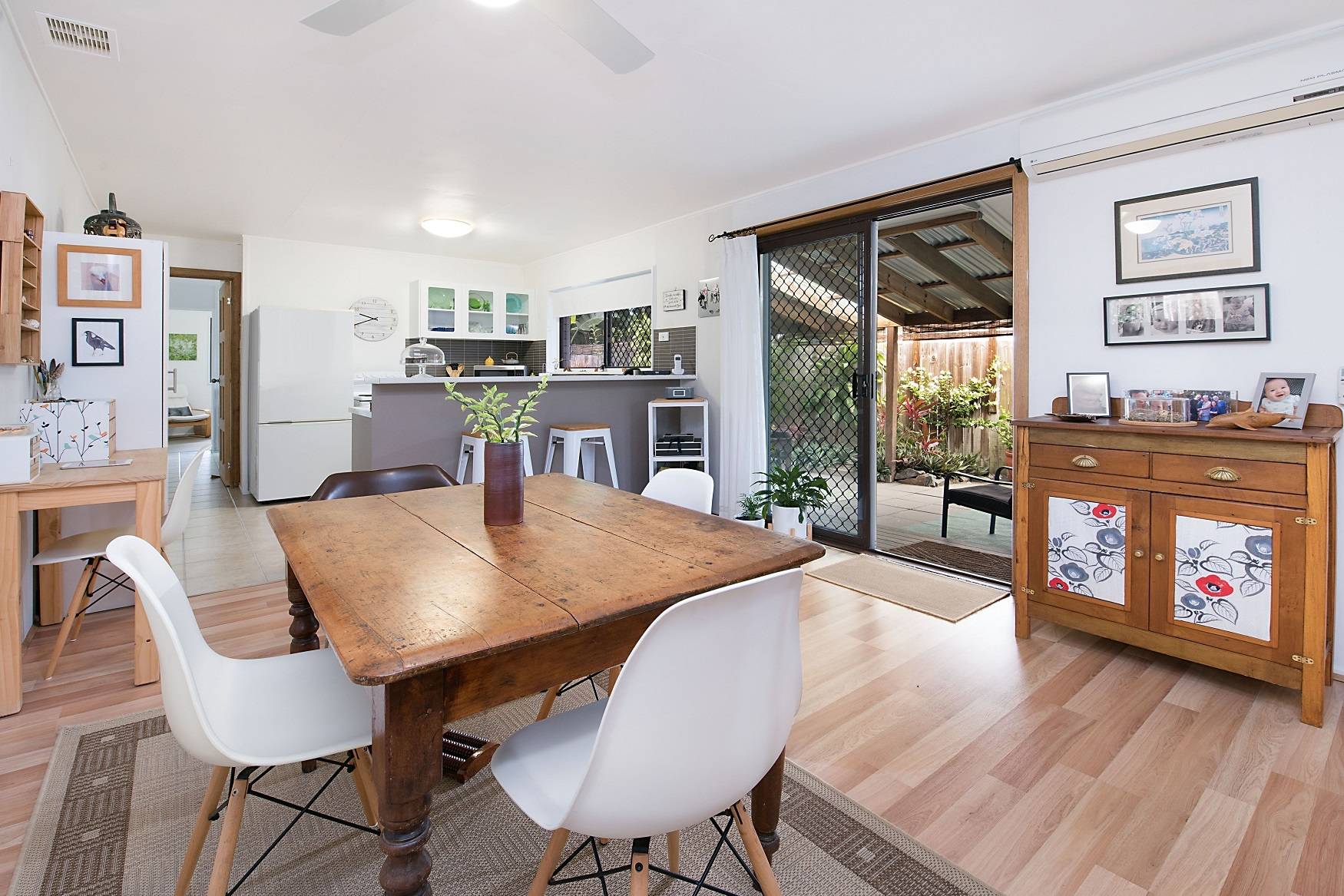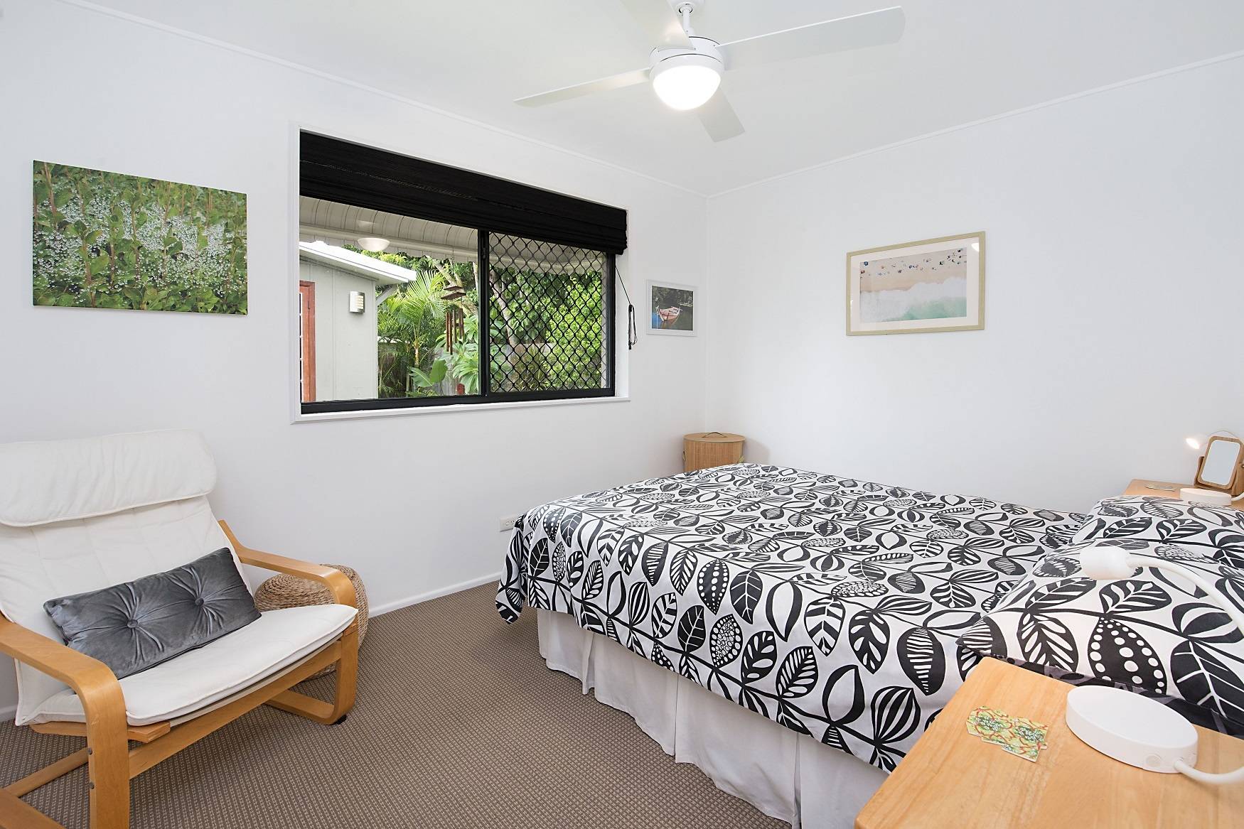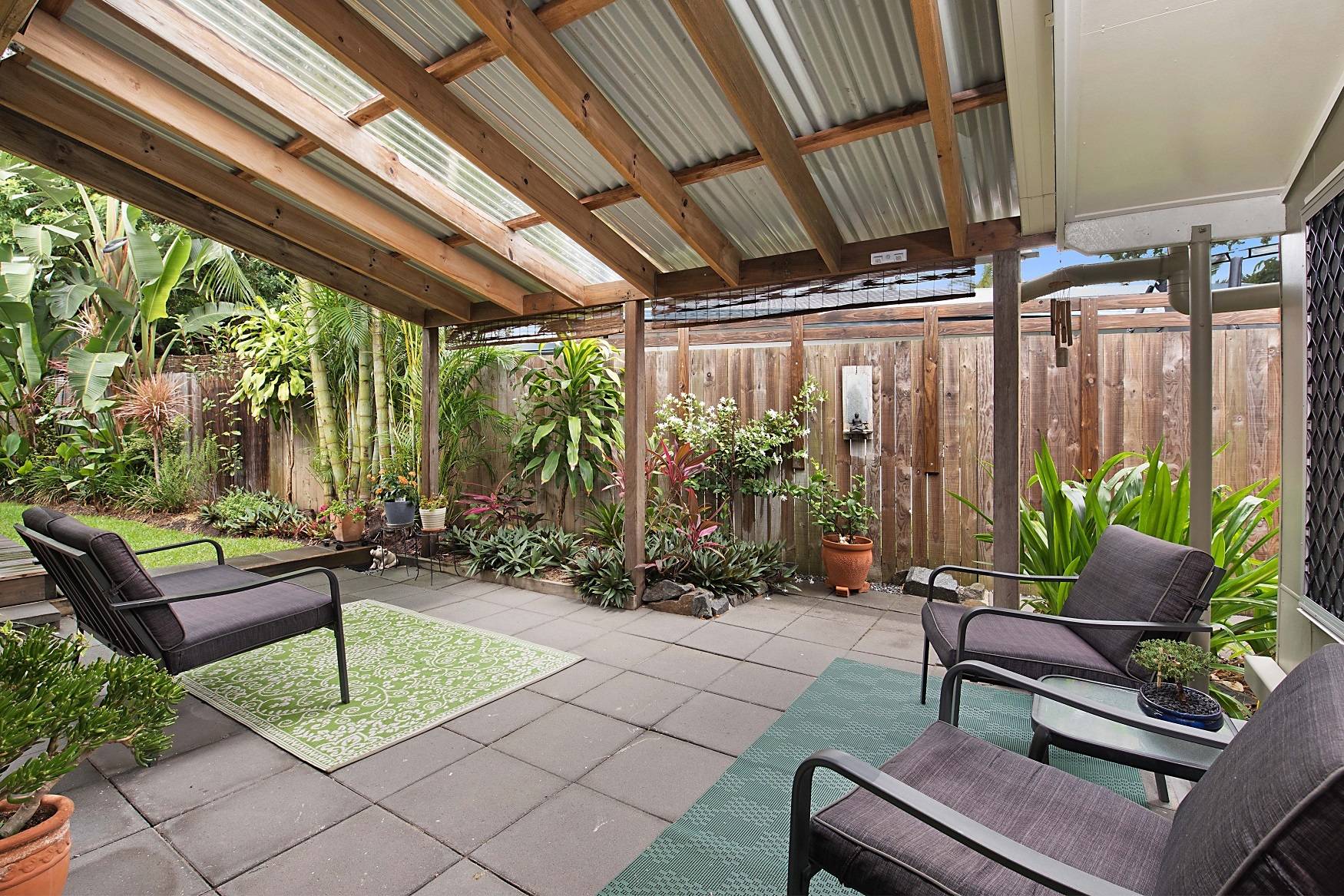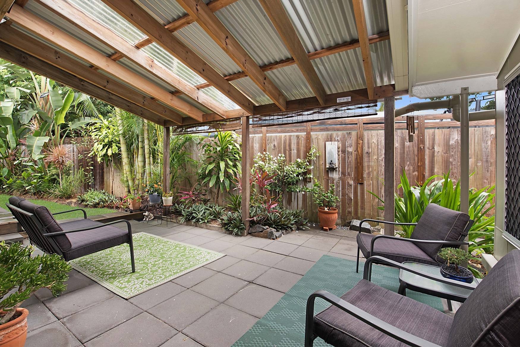 A walk in robe features in the large master bedroom and this room is positioned away from the second bedroom for privacy. This bedroom has built in robes. The bathroom also features a modern renovation. The undercover entertaining area is where you can relax and enjoy the tropical gardens. The detached rear modern studio makes for an ideal office or retreat and the garden shed will keep your tools in order. If you love privacy and tranquility then this is the property for you.