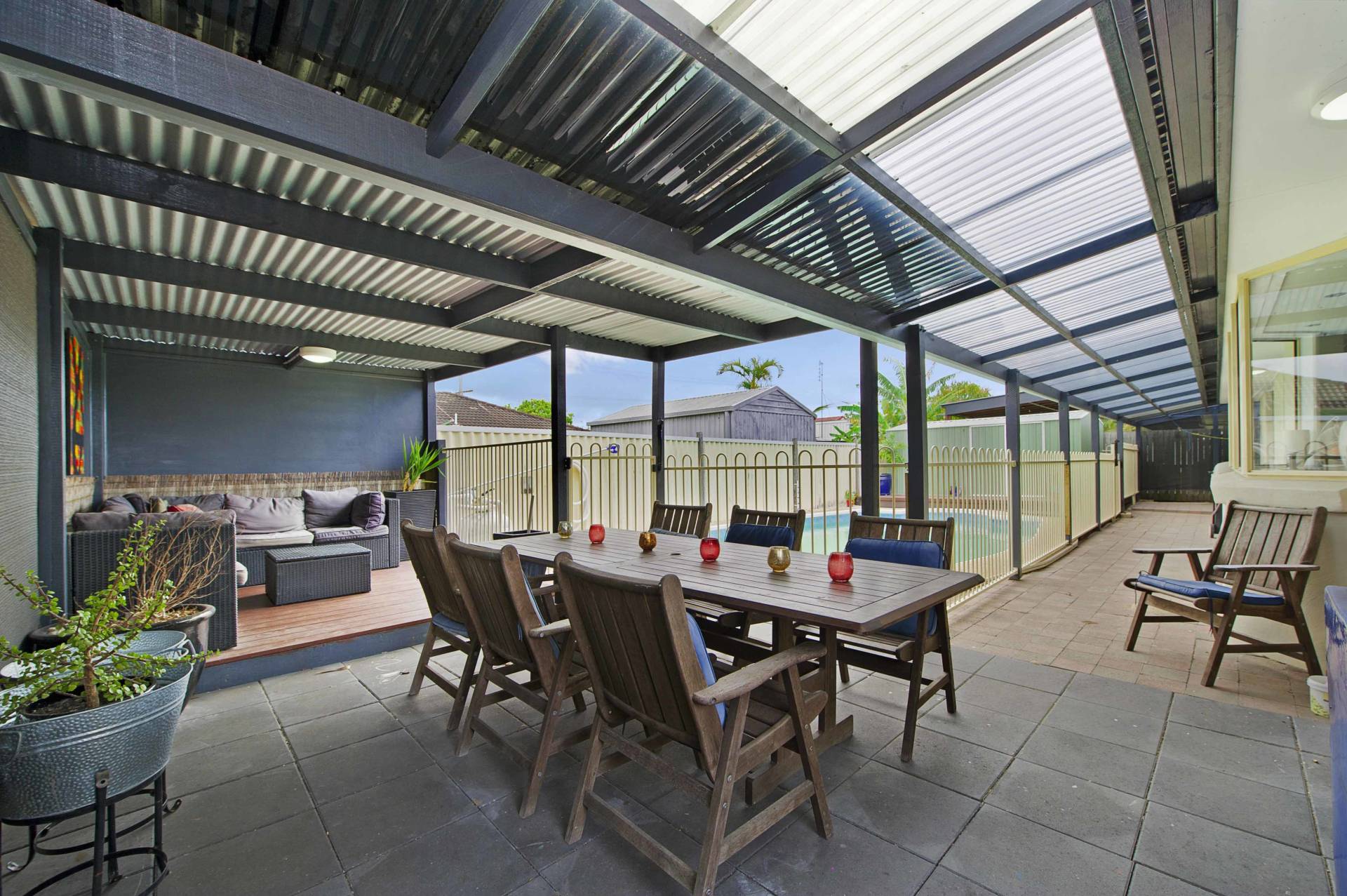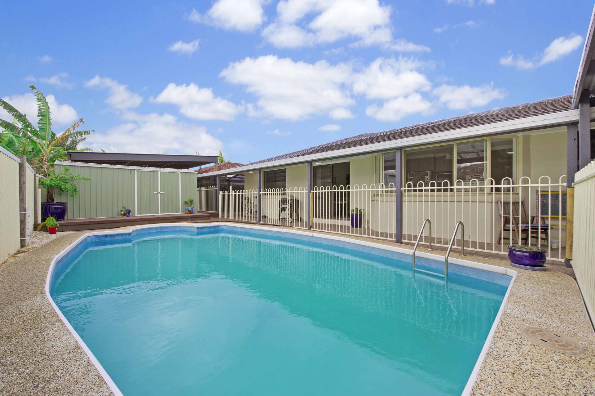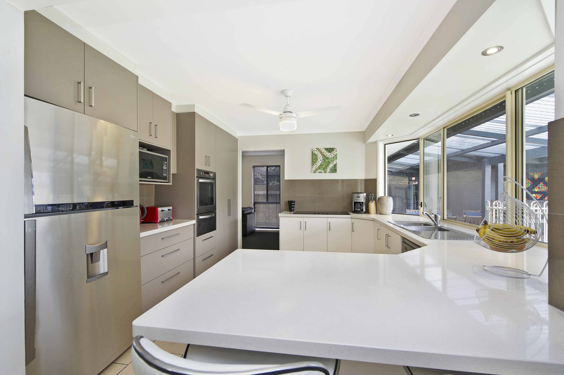 Chef style kitchen, stone benches, ample storage In ground pool All weather entertaining area Extra-large garden shed plus more storage Easy care gardens and landscaping Close to beach, schools, shops and transport