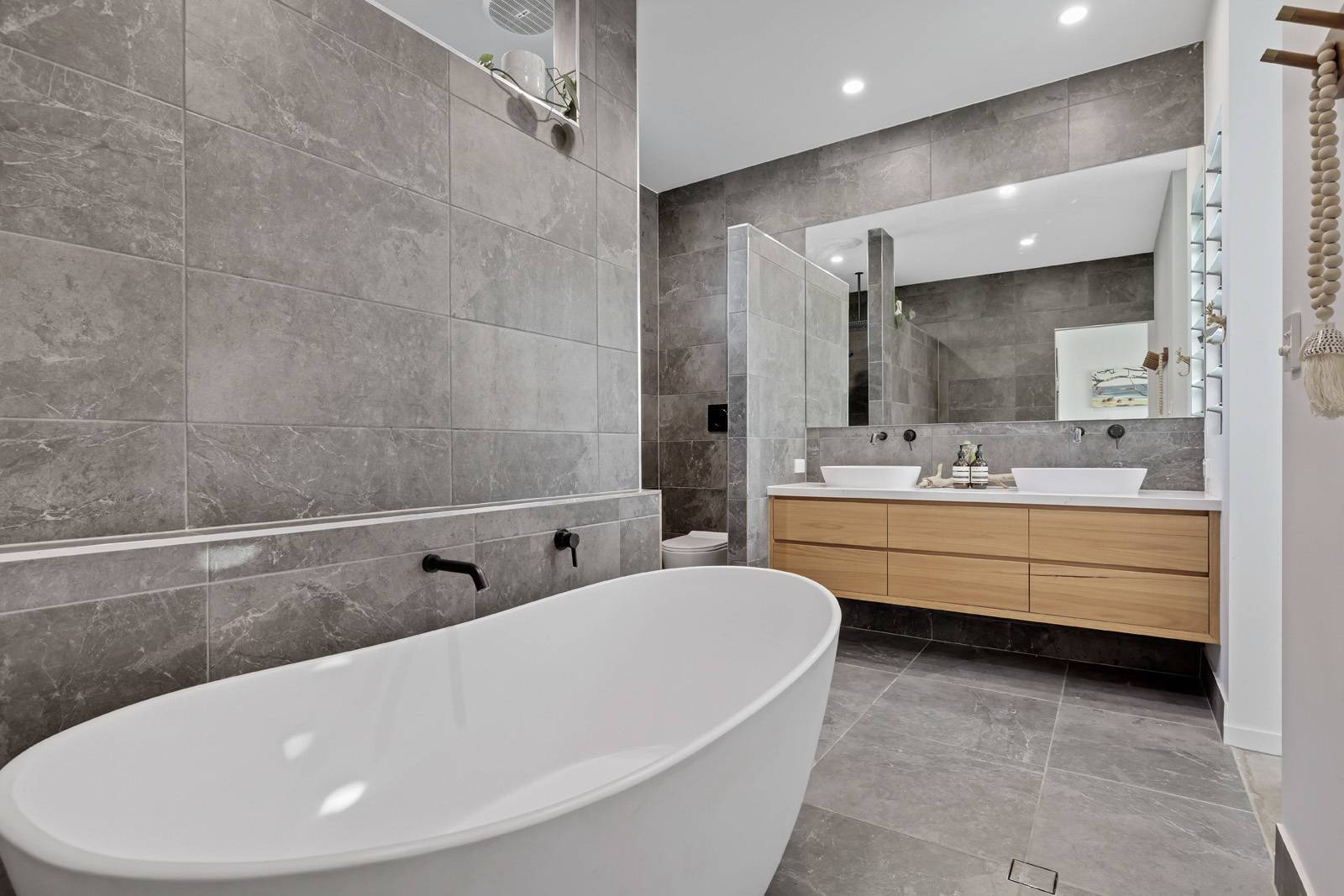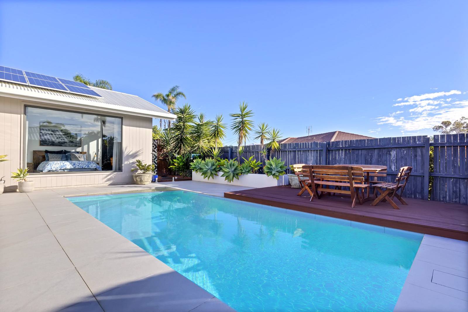 The fully equipped entertainer’s kitchen is cleverly located between the indoor and outdoor zones and boasts stone tops, plenty of storage and stainless steel appliances. Be amazed at the main bathroom finished to a 6-star standard and the cleverly concealed laundry is just another of the well-planned aspects of this beachside home. The outside will take your breath away with its north facing alfresco living deck complete with stunning oversized timber posts supporting the insulated skillion roof. The resort style pool is straight from the pages of a top end style magazine with frameless glass fencing, and raised timber deck creating yet another amazing living zone.