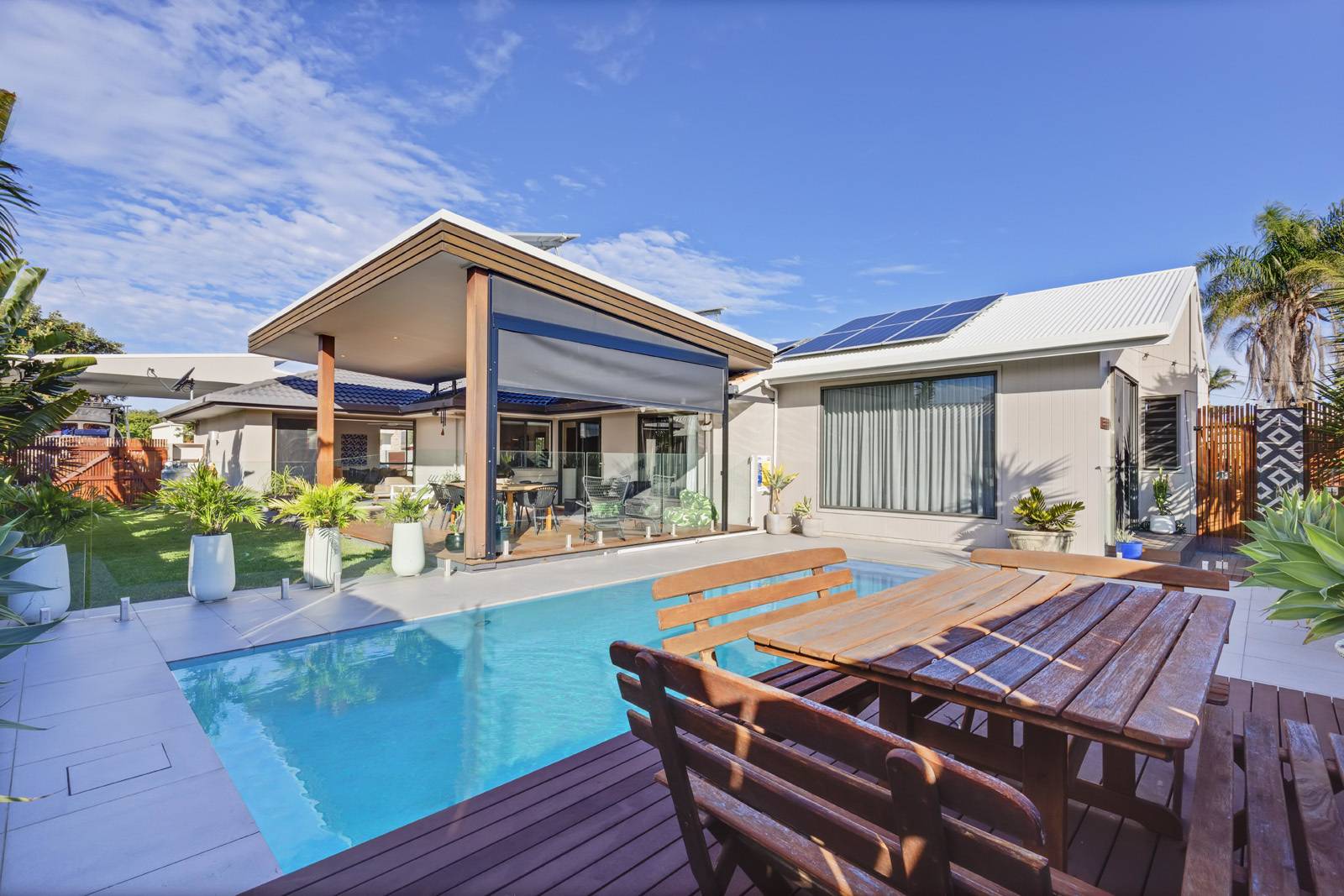 Offering the ultimate beachside lifestyle, just steps to kilometres of white sandy beaches, this highly desirable, north facing, tranquil home has a true holiday feel with total privacy. Meticulous attention to detail is evident from the front gate to the rear boundary and everything in between. There are four spacious bedrooms, with air con and ceiling fans. The master with a stunning en suite and walk in robe. Another en suited bedroom is situated at the front of the home. Bedrooms three and four have built in robes.