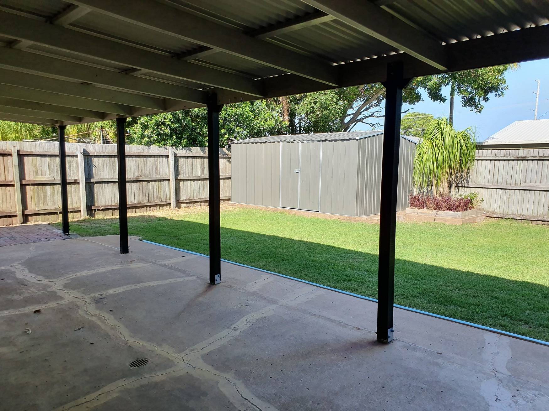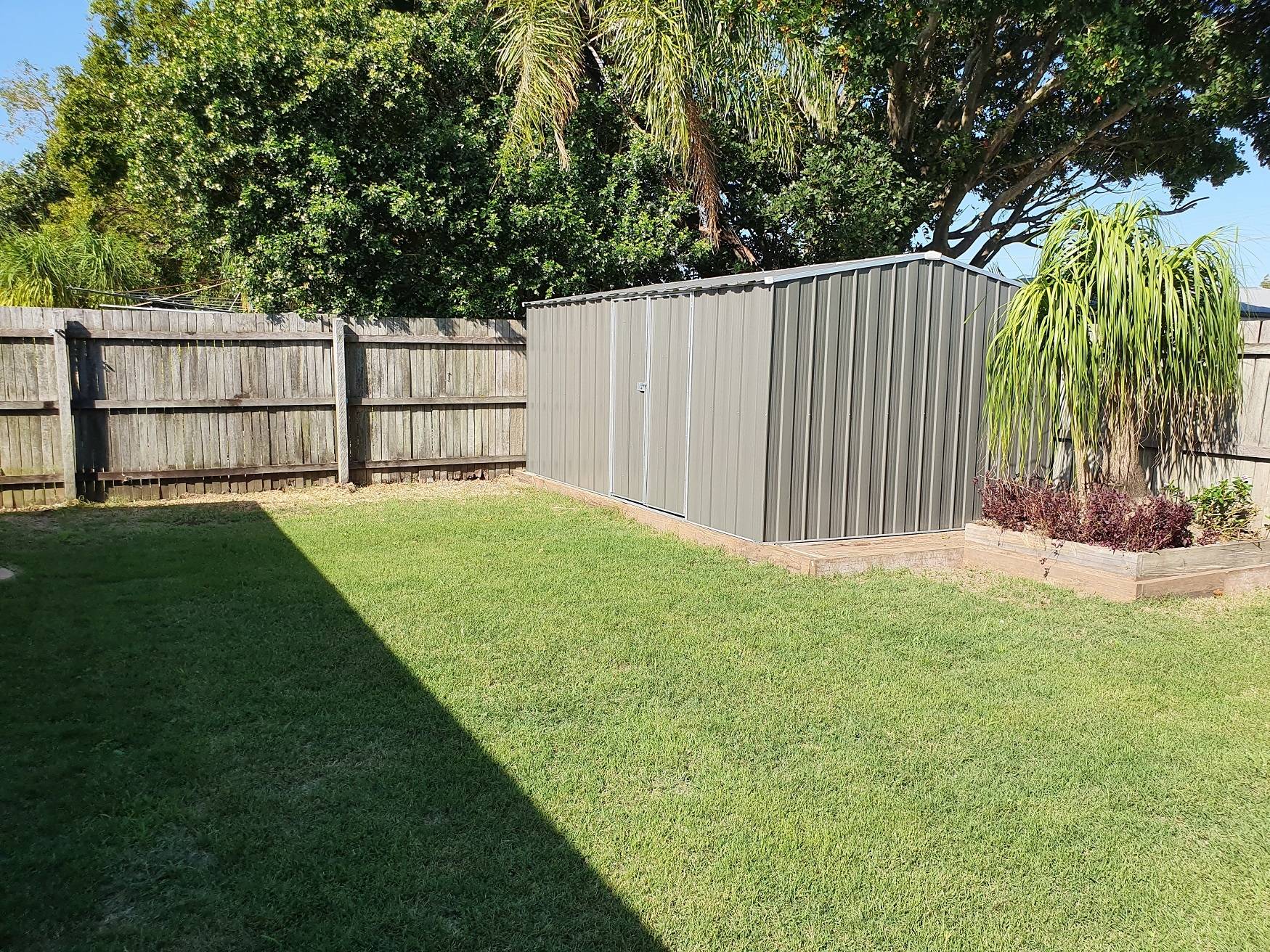 The outdoor entertaining area flows to the backyard which features and extra large storage shed.
