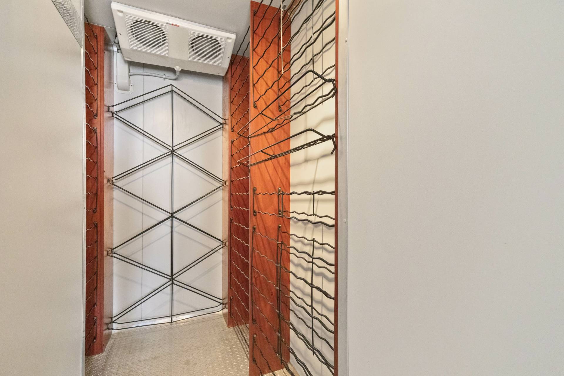 - Kitchen displaying a breakfast bar, stone accents, Miele appliances, an air-conditioned walk-in pantry, ample cupboard storage and a wine cellar