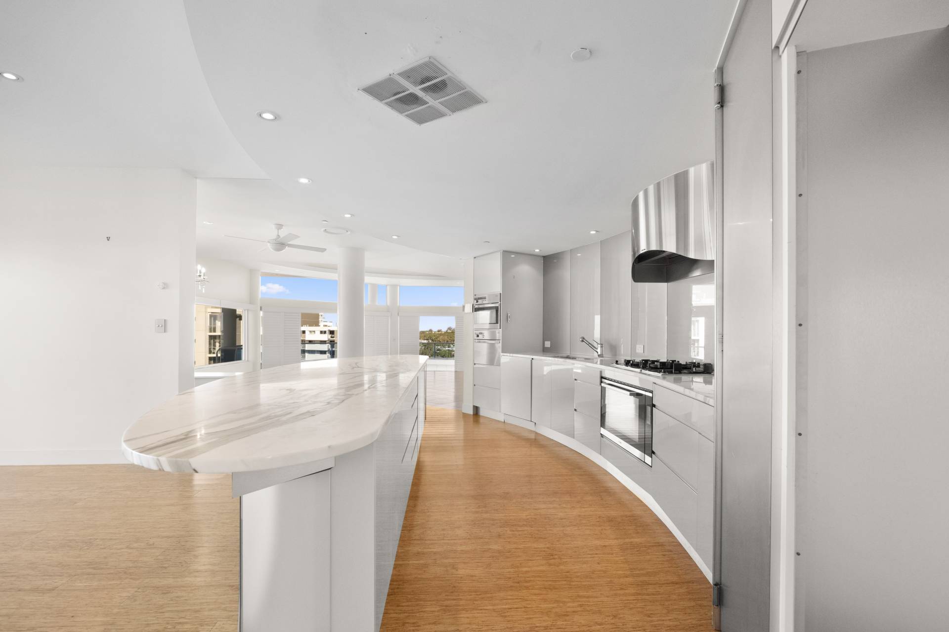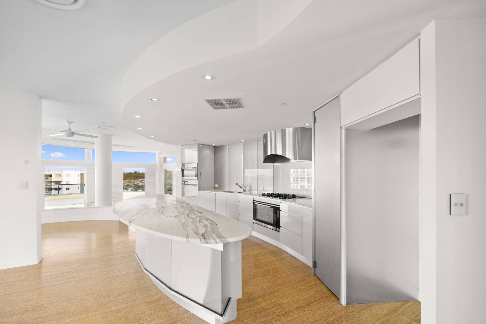 Occupying the top two levels of the renowned Melrose on Fifth complex, the apartment commands 360-degree views of Maroochydore Beach, the Mooloolaba Lighthouse and Mount Coolum and the hinterland beyond. Complementing this beautiful setting, sophisticated details such as bamboo floors, lofty ceilings, curved walls, plantation shutters, bi-fold doors and full-height glass feature throughout.