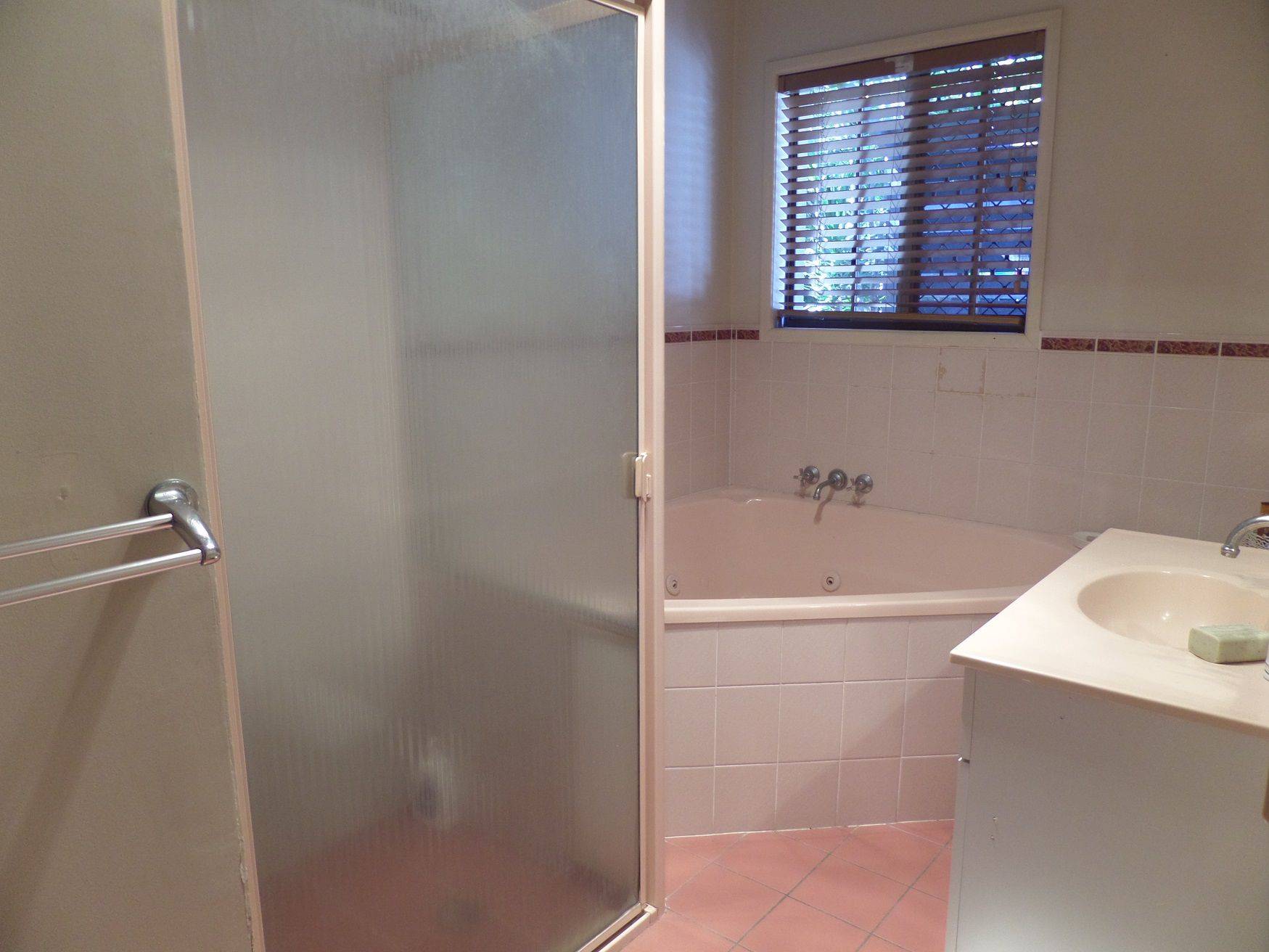 - Bathroom has bath and separate shower