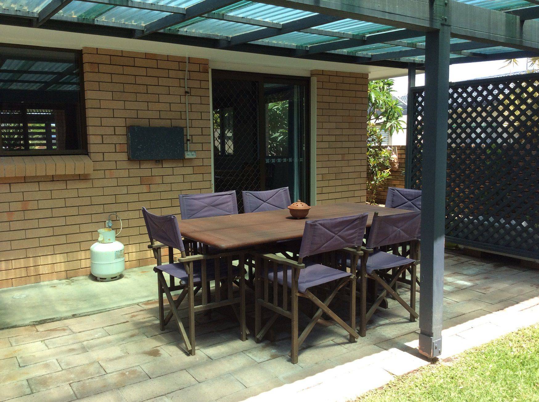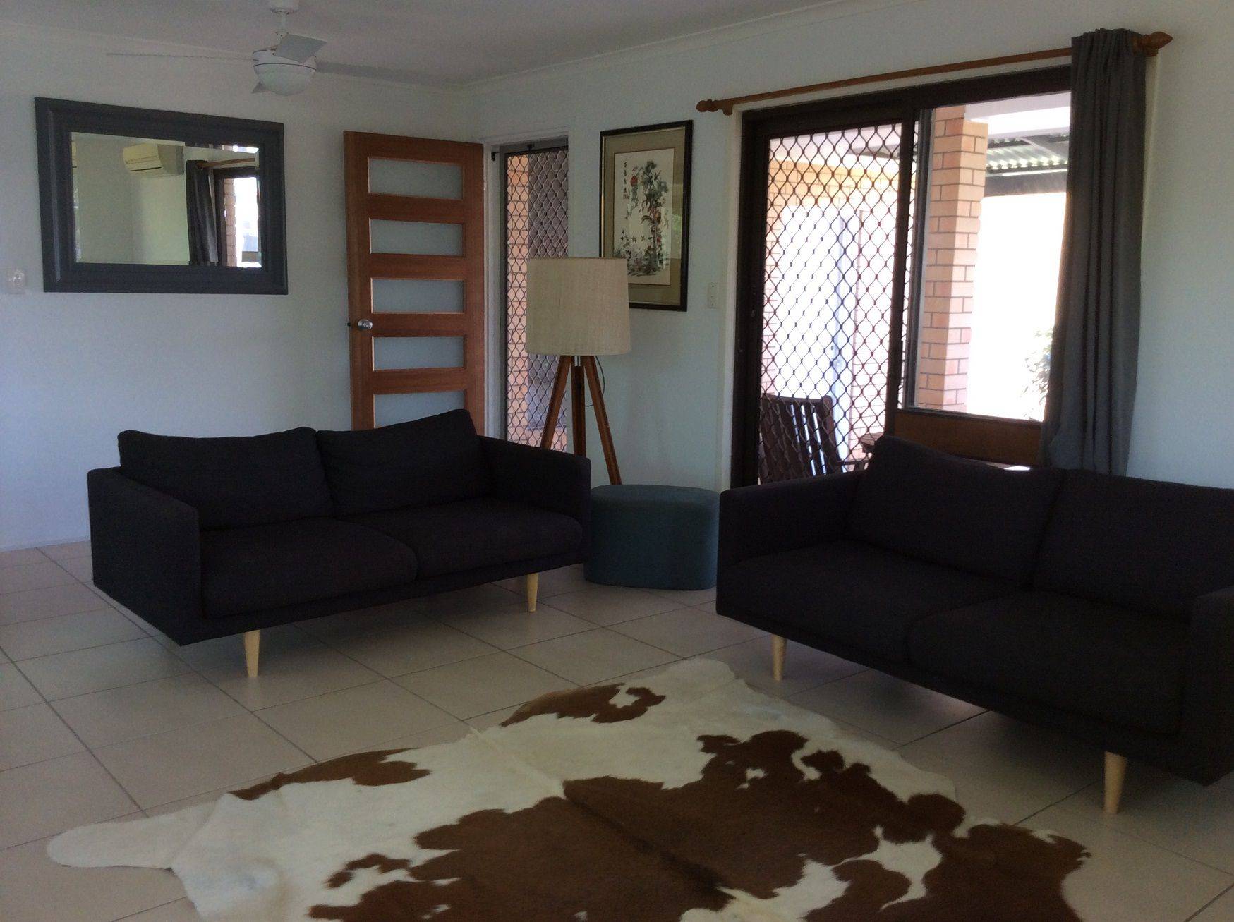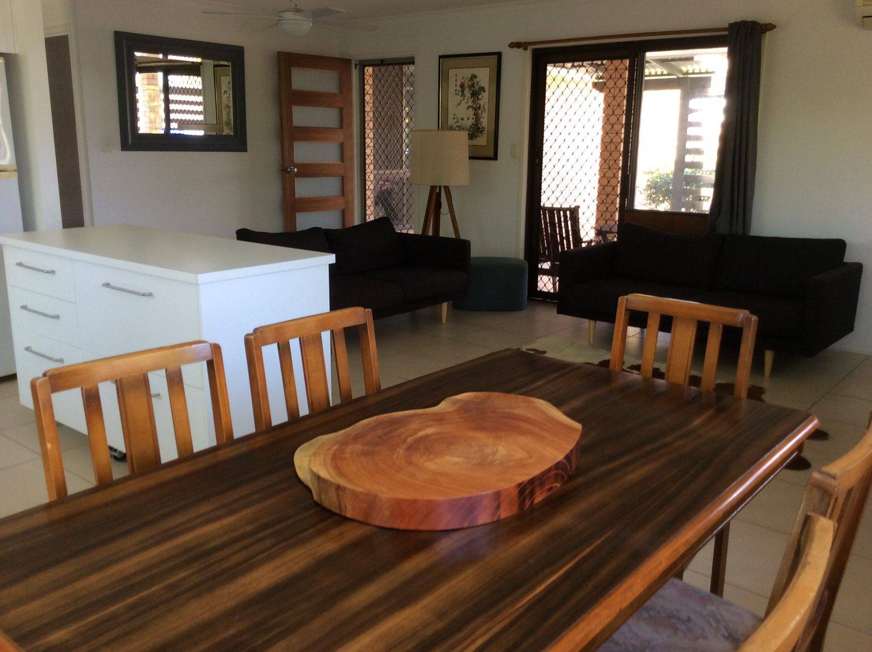 The open plan living and dining area is air conditioned, has a ceiling fan and opens to both the front and rear entertaining areas.