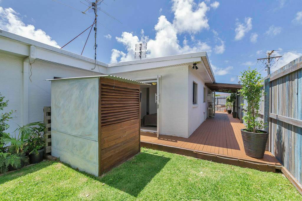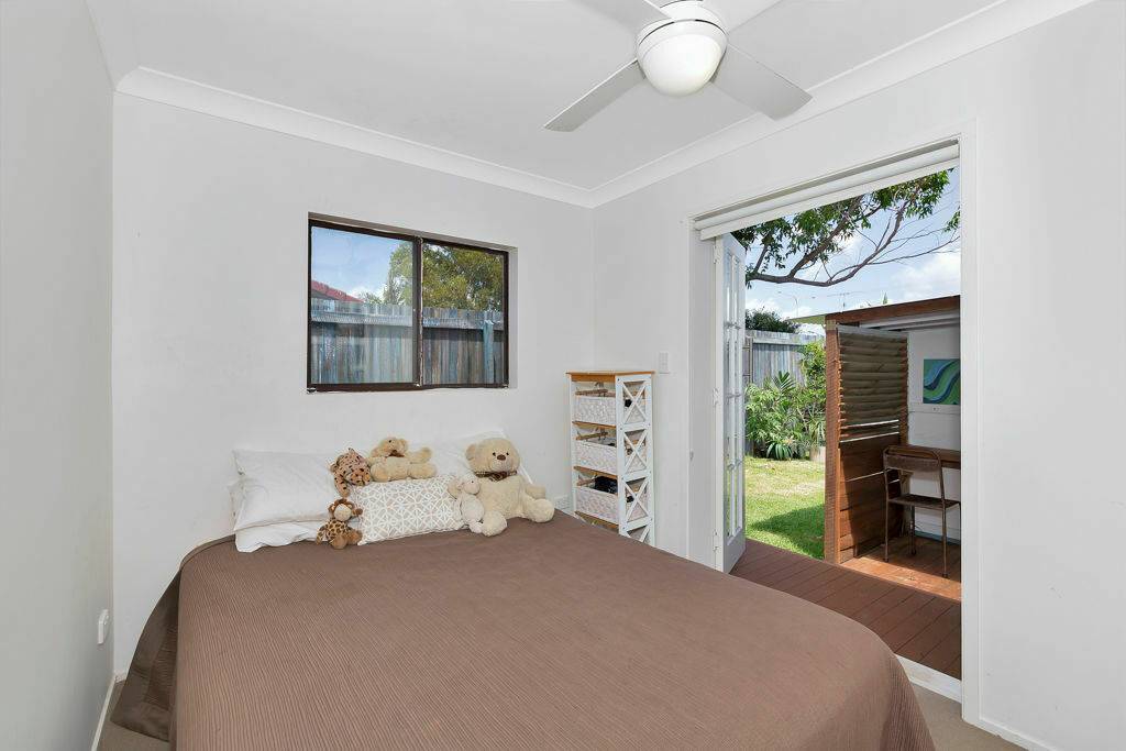 The second bedroom has separate access to the backyard with a great little art house or cubby for the kids.