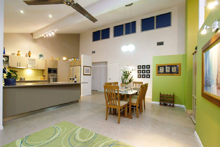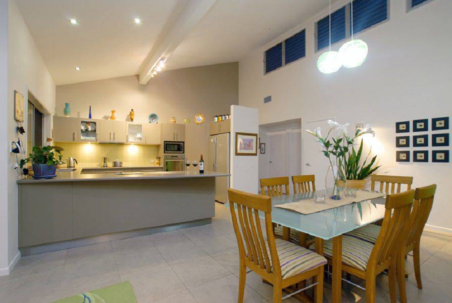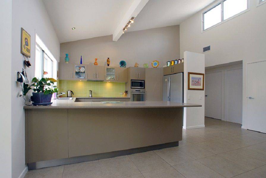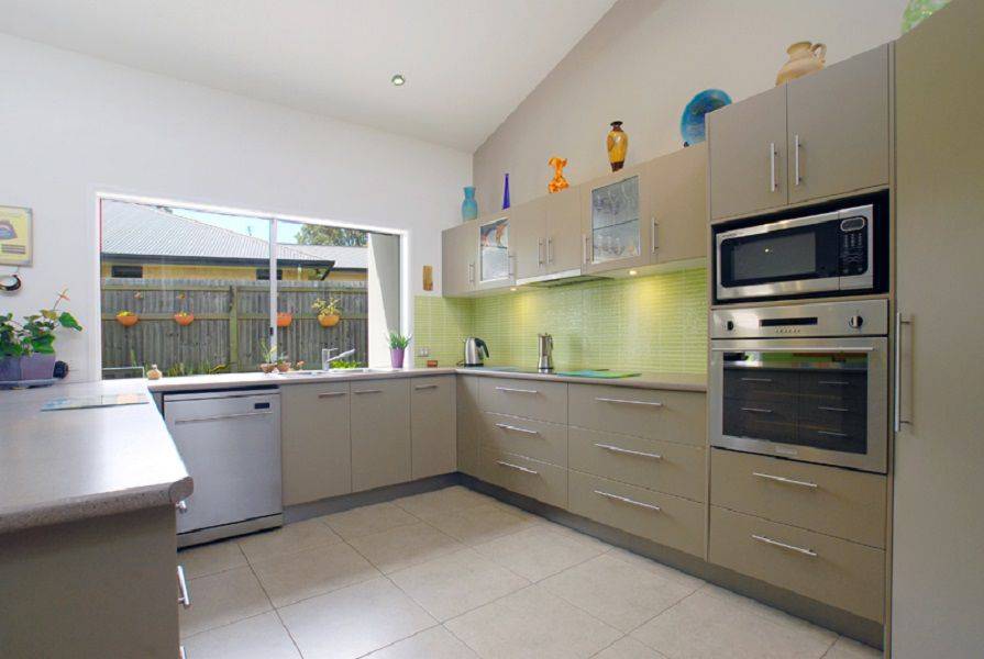 Modern kitchen with stainless steel appliances and plentiful bench space