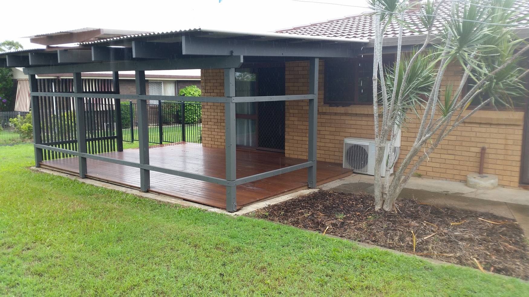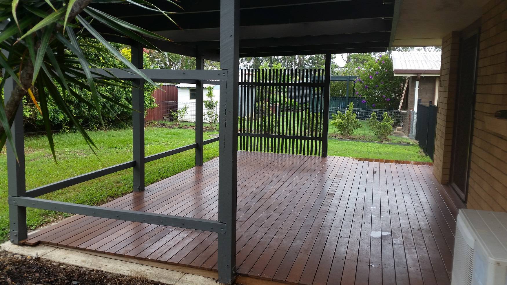 Fully fenced back yard with entertaining area