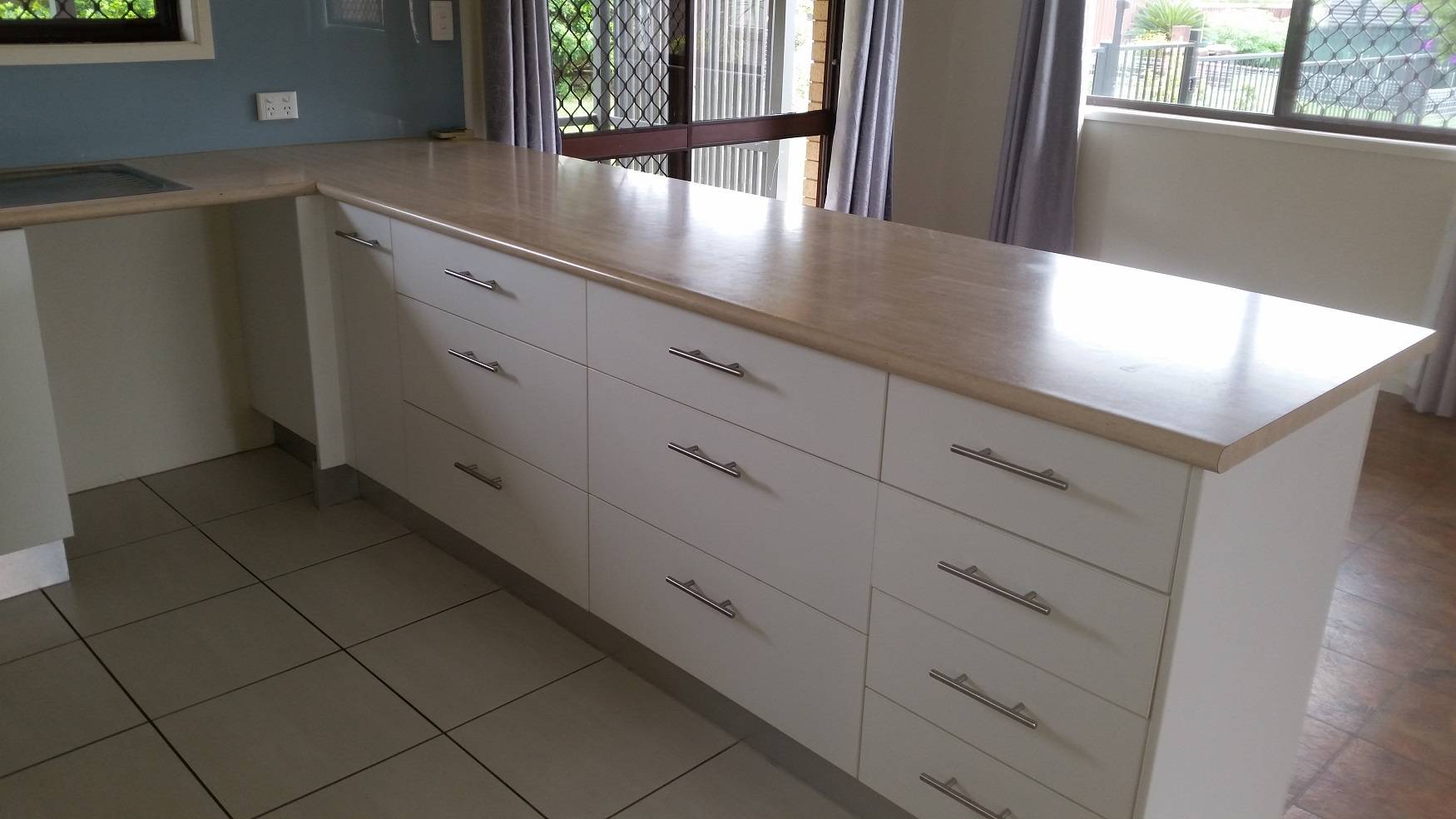Refurbished kitchen with ample storage space