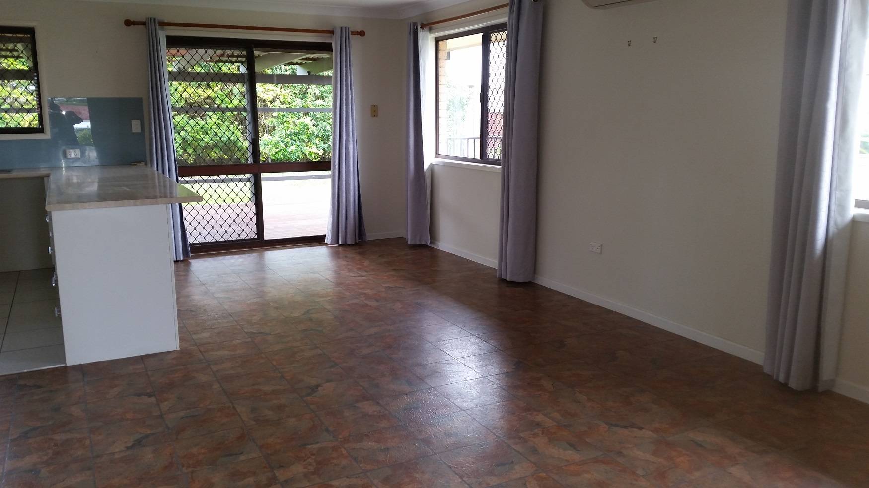 Open plan living/dining area with air conditioning