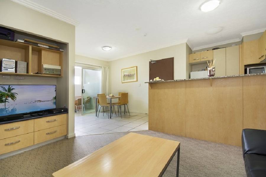 This large fully furnished one bedroom corner apartment has a modern kitchen, plenty of storage and an open plan dining/lounge room which opens to a private courtyard.