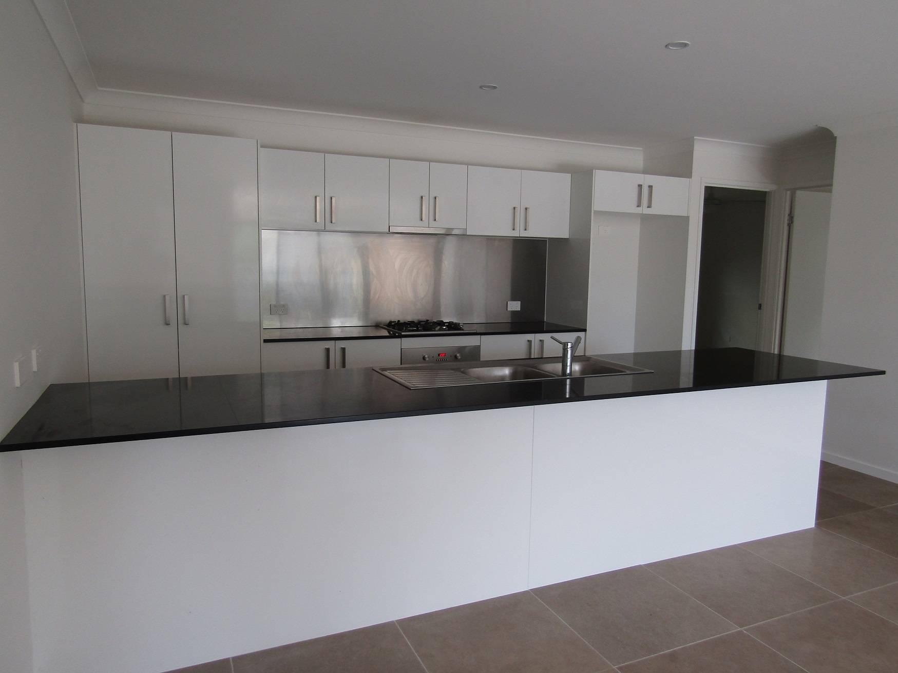 Featuring stone benchtops and stainless steel appliances the generous sized kitchen has ample cupboard space.